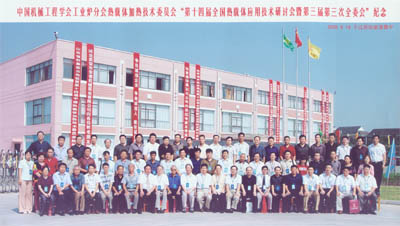 瀚邦公司總工程師劉世武先生,2005年9月在江蘇省張家港市主持召開(kāi)的熱載體加熱技術(shù)委員會(huì)第三屆第三次全委擴(kuò)大會(huì)議暨第十四屆全國(guó)熱載體加熱技術(shù)研討會(huì)上同與會(huì)代表合影,前排右十為劉世武先生。